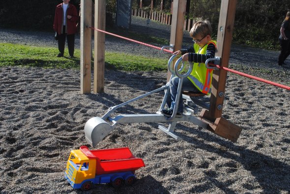 Sie erfahren so ganz nebenbei, dass Bergbau Teamarbeit und ein Tagebaubetrieb arbeitsteilig organisiert ist. Die Kinder spielen nach, was ihnen die Großexponate zuvor im Demonstrationsbetrieb vorgeführt haben.