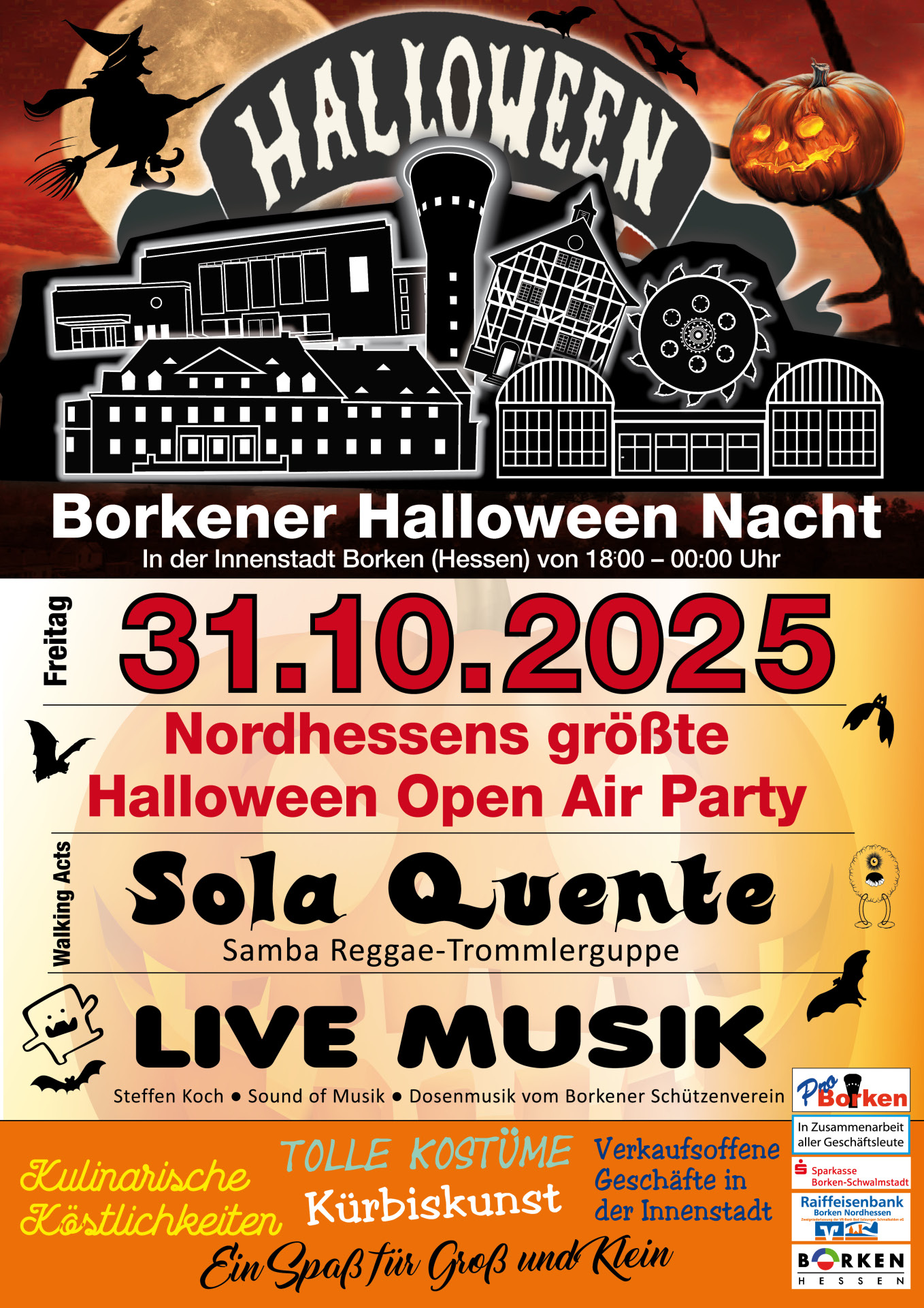 Bis dahin dürfen sich alle Halloween-Fans auf eine stimmungsvolle Borkener Halloween-Nacht in der Innenstadt freuen – ein echtes Highlight im Veranstaltungskalender der Stadt Borken (Hessen).