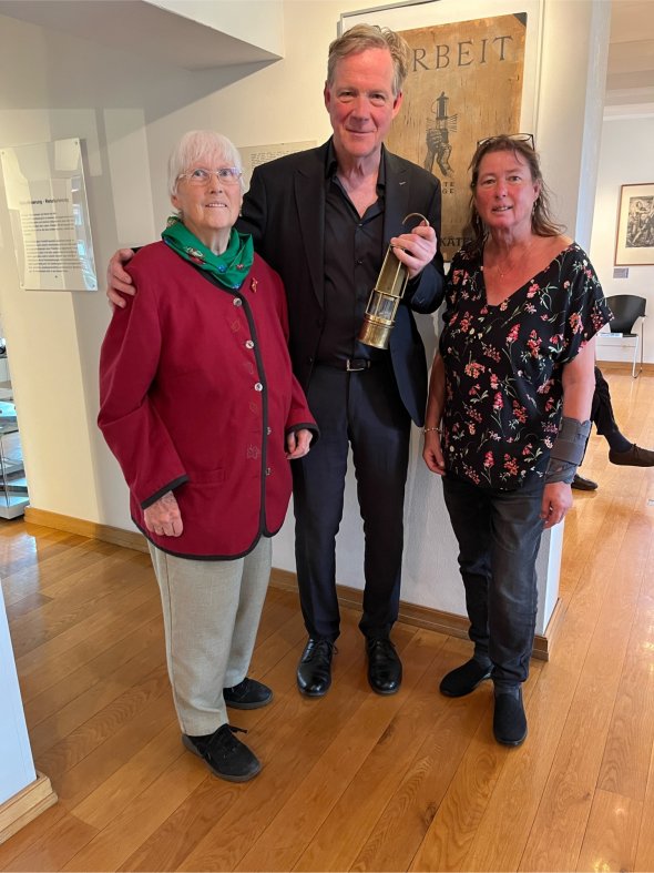 Die begeisterte Sammlerin montanhistorischer Kultur, Marianne Schrammel (links), Martin Kätelhön, Enkel des weltweit bekannten Künstlers, und Brigitte Mette eröffneten am 4. Mai den neuen Dauerausstellungsbereich des Bergbaumuseums Borken. Gezeigt werden Radierungen, Lithografien und Holzschnitte, die das harte Arbeitsleben der Bergleute anschaulich, authentisch und kunstvoll darstellen.