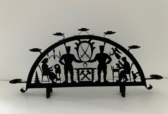 Das hier gezeigte Objekt ist ein sogenannter Schwibbogen. Er ist in der Advents- bzw. Weihnachtszeit eine beliebte Dekoration, welche die Fenster in ehemaligen Bergbaugebieten auch heute noch ziert.