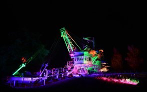 Illuminierte Bergbaubagger und Bergbaulokomotiven sowie "Forscherpass Energie" mit vielen Mitmachstationen für Kinder.